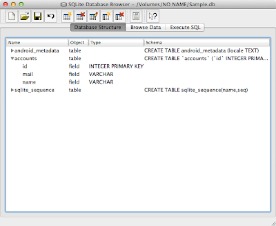 どんなデータベースができているでしょうか。SQLite Database Browserを使って確認してみます。